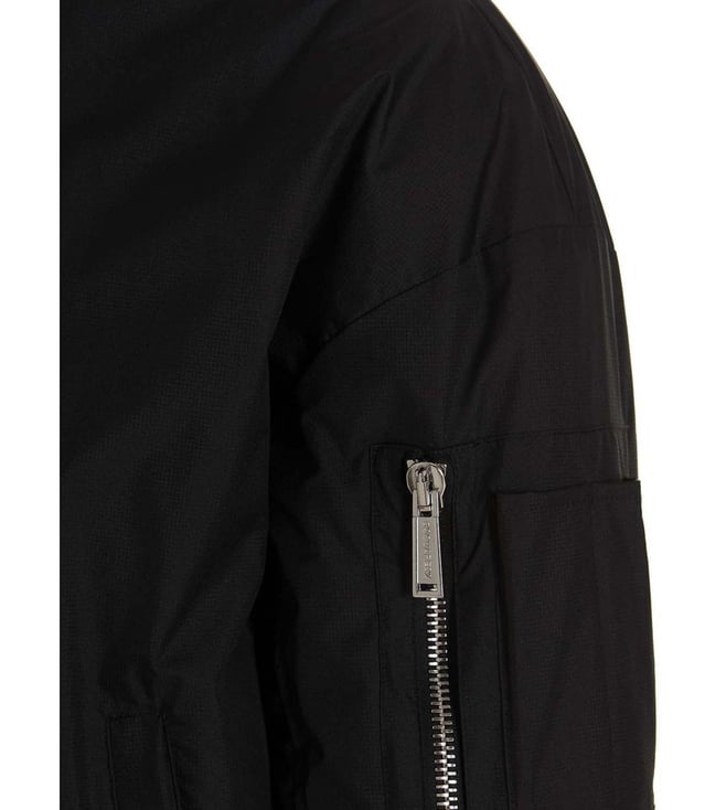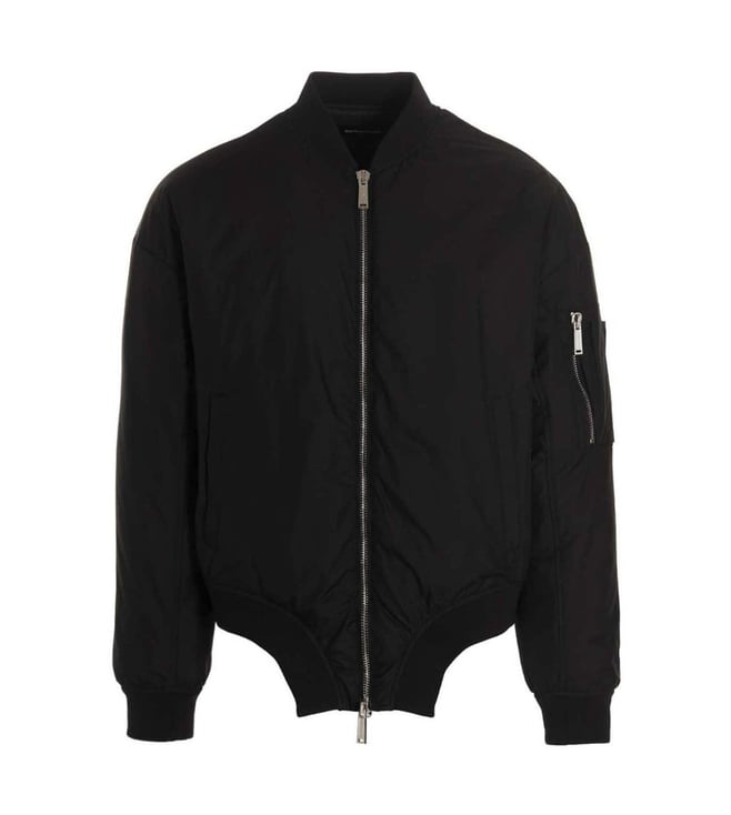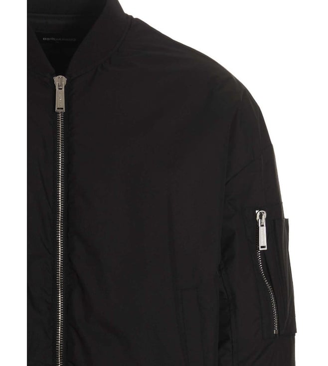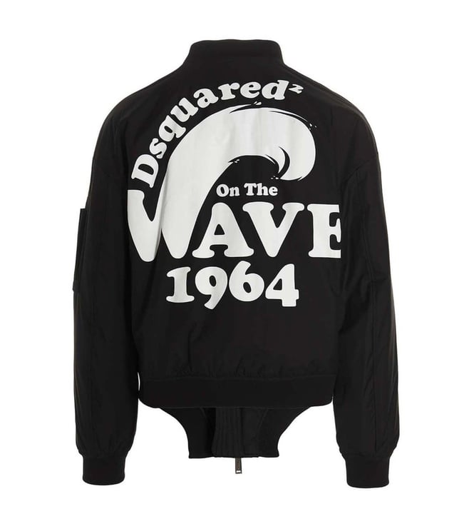 Elevate your style with the Dsquared2 Black Bomber Jacket. The wave nylon bomber jacket with back print, zip closure, pockets, long cuffed sleeves, asymmetric hem at the front. True to size fit. Products purchased from Darveys are supported exclusively by the warranty/exchange policies of Darveys and its partner boutiques. Brand owners and their channel partners are not responsible for exchange/warranty services for items purchased through Darveys.