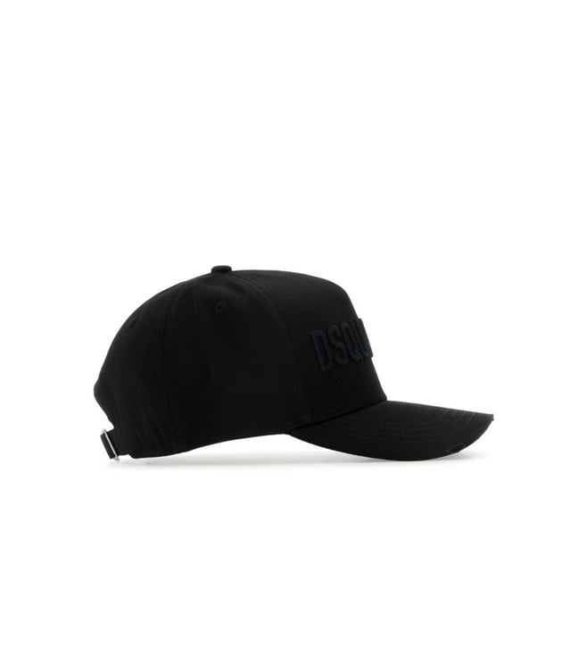 Dsquared2 black cotton baseball cap with curved visor, front logo detailing, adjustable strap at back. Products purchased from Darveys are supported exclusively by the warranty/exchange policies of Darveys and its partner boutiques. Brand owners and their channel partners are not responsible for exchange/warranty services for items purchased through Darveys.