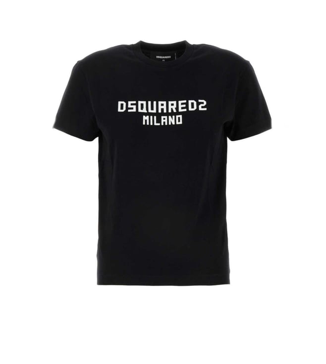 The Dsquared2 Black Just Right Fit D2 Milano T-Shirt is a chic blend of style and comfort, tailored for the modern woman. Crafted from 100% premium cotton, this regular fit tee offers a luxurious feel against the skin. Its sleek black hue exudes sophistication, while the minimalist design ensures versatility for any wardrobe. The subtle pattern adds a touch of elegance, making it perfect for both casual outings and upscale events. A must-have staple that effortlessly elevates any ensemble.