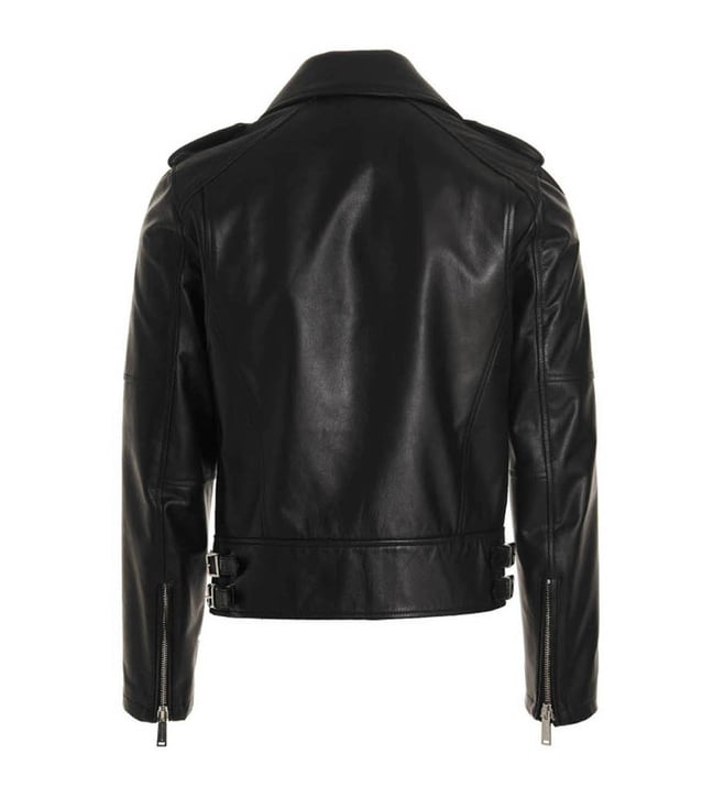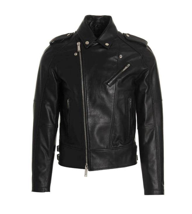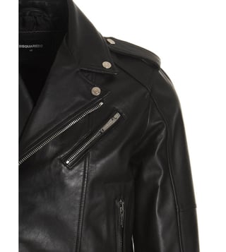Elevate your style with the Dsquared2 Black Jacket. Kiodo' leather jacket with zip closure, pockets, long sleeves and silver metal details. True to size fit.
