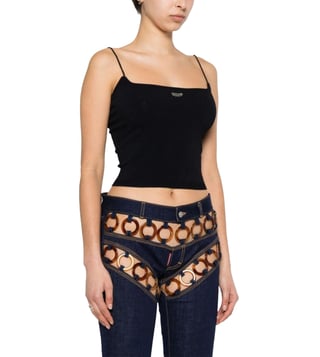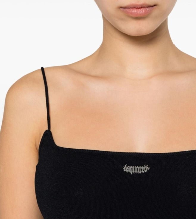 The Dsquared2 Black Logo-Plaque Knitted Crop Top is a chic fusion of modern style and comfort. Crafted from a luxurious blend of 83% viscose and 17% polyester, this top offers a regular fit that flatters the silhouette. Its sleek black hue is accentuated by a distinctive logo plaque, adding a touch of sophistication. The knitted pattern provides texture and depth, while the design ensures ease of wear. Perfect for the fashion-forward woman, this crop top is a versatile addition to any wardrobe.