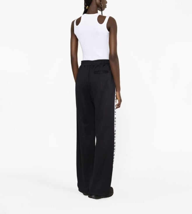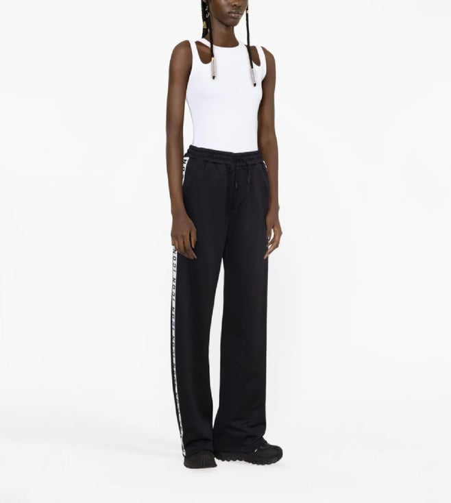 Embrace effortless style with these black track pants, designed for women who value comfort and chic. Crafted from a luxurious blend of 55% polyamide and 45% cotton, they offer a soft, breathable feel. The loose fit and solid pattern make them perfect for lounging or a casual day out, exuding understated elegance. Products purchased from Darveys are supported exclusively by the warranty/exchange policies of Darveys and its partner boutiques. Brand owners and their channel partners are not responsible for exchange/warranty services for items purchased through Darveys.