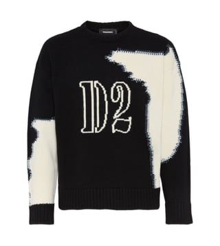 DSQUARED2 Black & White Sweater With Intarsia Pattern