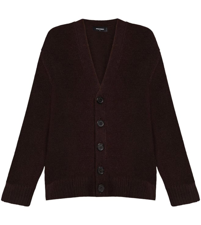 DSQUARED2 Brown Wool Woven Design Cardigan