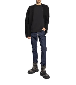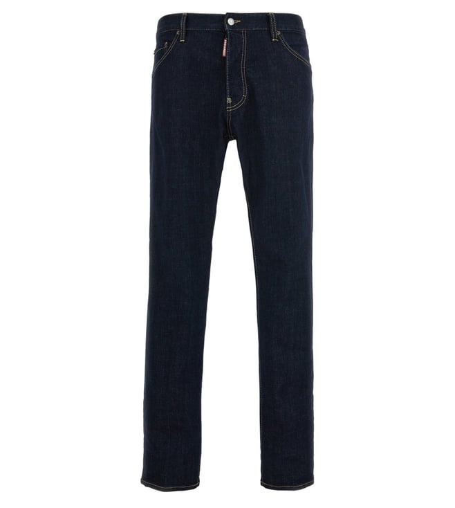 Elevate your style with the Dsquared2 Dark Blue Slim Fit Jeans. Indigo blue cotton denim panelled design lowrise belt loops concealed fly and button fastening classic five pockets slim cut Crafted for durability and comfort. Products purchased from Darveys are supported exclusively by the warranty/exchange policies of Darveys and its partner boutiques. Brand owners and their channel partners are not responsible for exchange/warranty services for items purchased through Darveys.