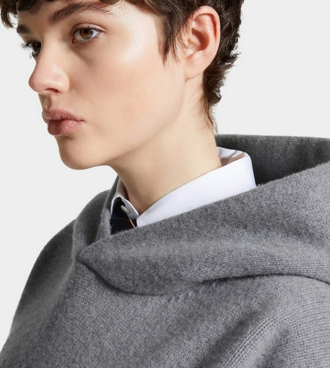 Wrap yourself in cozy elegance with this grey wool hoodie, designed for the modern woman. Crafted from 100% wool, it offers warmth and style in a sleek, solid pattern. The long sleeves and hood provide comfort and versatility, making it a perfect companion for chilly days and casual outings. Products purchased from Darveys are supported exclusively by the warranty/exchange policies of Darveys and its partner boutiques. Brand owners and their channel partners are not responsible for exchange/warranty services for items purchased through Darveys.