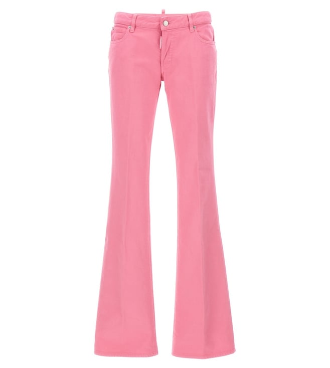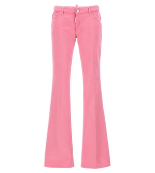 Elevate your wardrobe with the Dsquared2 Light Pink Flared Jeans. Designed with medium waist flare stretch cotton jeans, mid-rise model with flare leg and button closure. true to size fit, these trousers combine comfort and sophistication for everyday wear. Products purchased from Darveys are supported exclusively by the warranty/exchange policies of Darveys and its partner boutiques. Brand owners and their channel partners are not responsible for exchange/warranty services for items purchased through Darveys.
