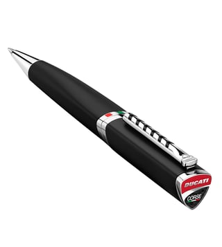 More than a pen, a brand statement. The Ducati Corse shield adorn the top of the ballpoint pen with a colored resin triangular pin that shapes the entire pen cap, making this product unique. The clip is itself inspired by motorbike vent and a small italian flag complete the design at half lenght. All very sporty, all very unique.