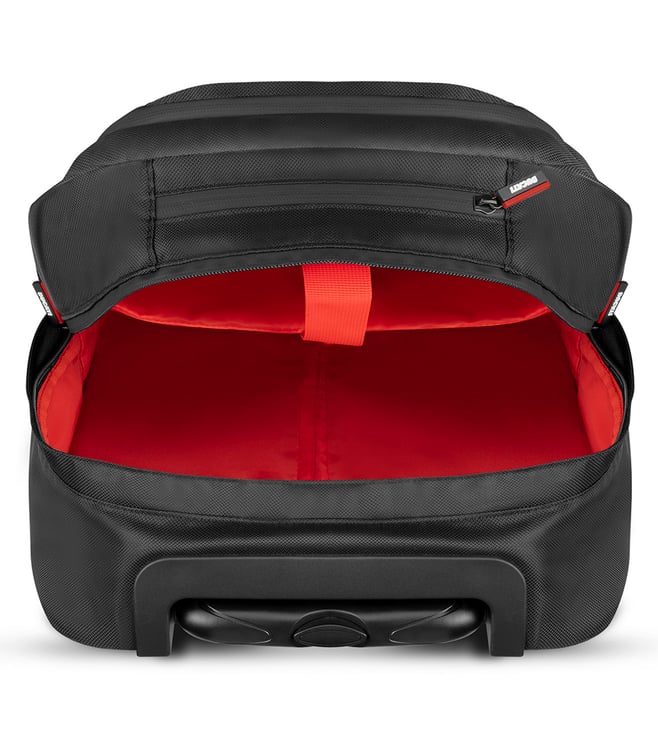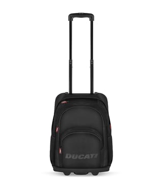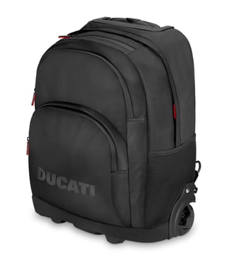 Upgrade your travel essentials with this Ducati laptop backpack designed for business and leisure. It features a functional handle, smooth-rolling wheels, a padded laptop sleeve, and multiple pockets for seamless organization. Crafted with water-resistant fabric and sleek Ducati branding, it perfectly combines style, function, and versatility.