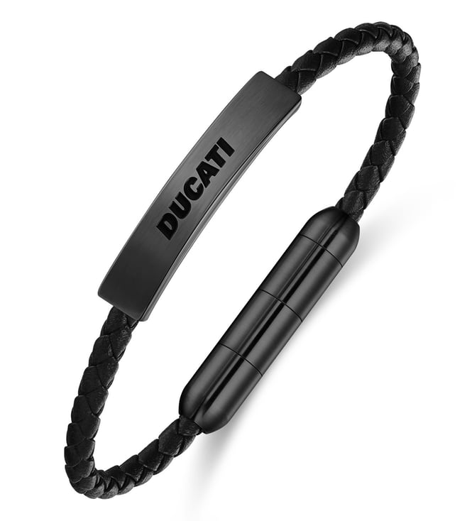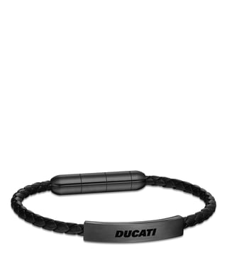 The DUCATI trail bracelet is raw, rugged and bold. Crafted from black braided leather, it is defined by uncompromising character. At its centre, the ion plated black motif with DUCATI signature stands as a quiet mark of purpose never loud, always present.