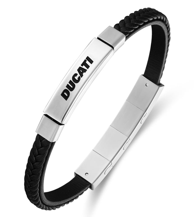 Voyage is built into the design of the DUCATI voyage bracelet. Double layered black leather delivers structure and style in equal measure, while the DUCATI motif at centre keeps it grounded. It is not an accessory. It is a mindset.