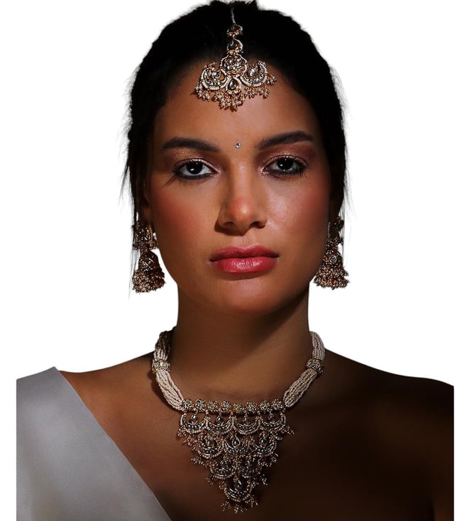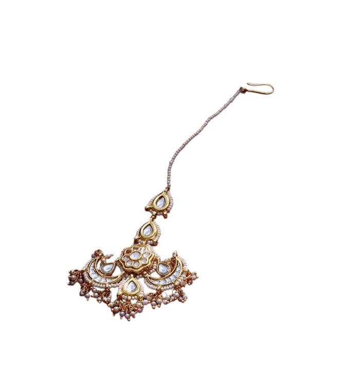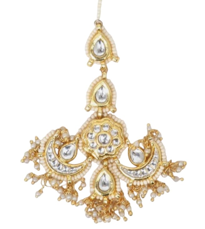 Dugristyle Cream, Gold, White Alloy Maang Tikka