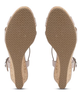 Perfect your summer day-to-night edits with the stylish Koala ankle strap wedges. Featuring a plaited T-bar strap with an open back and a buckle fastening, the sandal toe and a cork-effect mid-wedge heel complete the design.