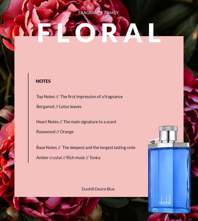 Dunhill Desire Blue is the fragrance evoking the rationality and refinement of the Dunhill gentleman. Skilled and subtle, this man has a judgment valued by others and an artistic sensibility. Individual and self-relevant, Desire Blue embodies self-exploration. This aquatic, amber-like fragrance was inspired by a man's self awareness. The fresh, deep notes of bergamot and orange flower water impart a sparkling dimension while amber crystals, musk and tonka bean warm and soothe the sense.