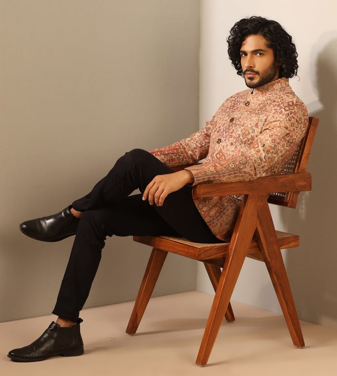 Dusala brings a unique fine wool silk full jacket, designed to fit a causal look, in a perfect beige colour. Keep yourself comfortable with this robust jacket, which promises to last long. Disclaimer: All other items in the image are only for display purposes and will not be a part of the delivery content. Product colour may slightly vary due to photographic lighting sources. Country of Origin - India.