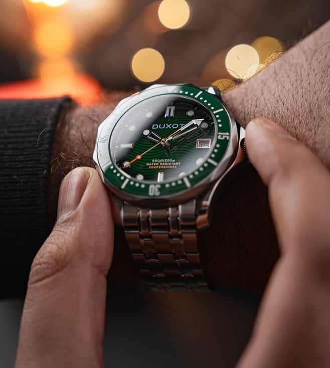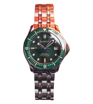 Introducing the DUXOT Henri Diver Automatic Men's watch, a blend of classic style and modern functionality. With a sleek 41mm case, this timepiece exudes sophistication and durability. The DX-2060-33 model boasts automatic movement, ensuring precise timekeeping without the need for a battery. Perfect for the adventurous man, this watch is water-resistant up to 200 meters, making it ideal for diving or everyday wear. Elevate your style with the DUXOT Henri Diver Automatic Men's watch ¿ a timeless accessory for the modern man.
