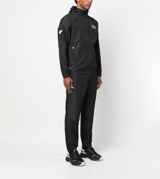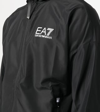 The Ea7 Emporio Armani Black Logo Jacket is a sleek fusion of style and functionality, designed for the modern man. Crafted from premium polyester, this jacket offers a lightweight yet durable wear. Its full sleeves and adjustable hood provide optimal comfort and protection against the elements. The iconic Emporio Armani logo pattern subtly adorns the fabric, adding a touch of sophistication. Perfect for urban adventures or casual outings, this jacket embodies contemporary elegance with a sporty edge.