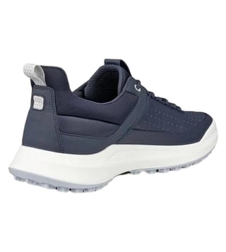 ECCO Men's Core Marine Golf Shoes feature a striking fade design on the mesh collar, blending street style with performance. Crafted from ECCO leathers with varied textures, perforations, and synthetics for a premium look. ECCO HYDROMAX keeps feet dry, while the E-DTS TWIST outsole ensures multi-directional traction.