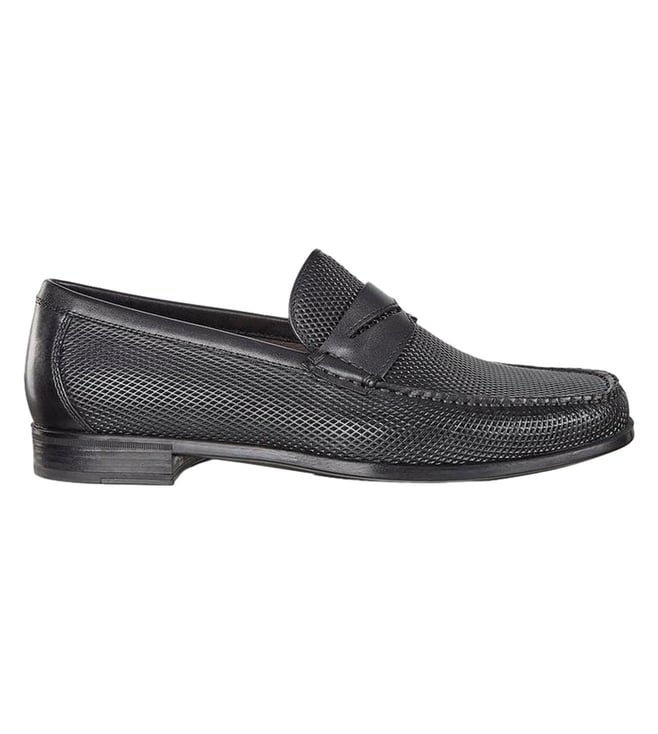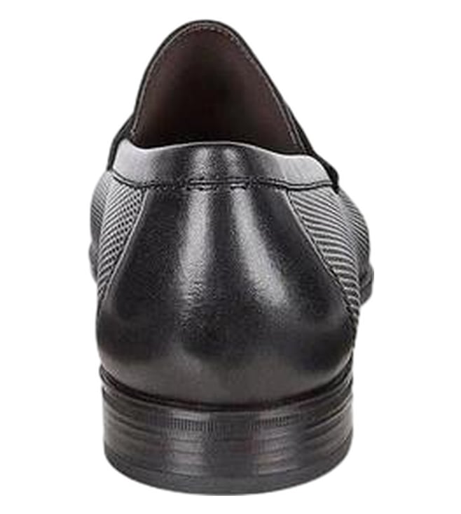 ECCO Men's Dress Moc Black Loafers feature rich leather and a flexible outsole. With ECCO Comfort Fibre System, they maintain a fresh climate for all-day wear in formal or casual settings.