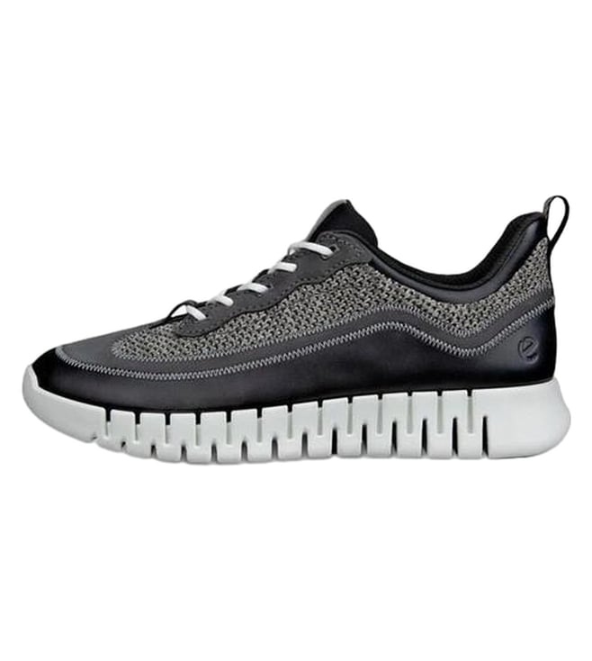 ECCO Men's Gruuv Black, Magnet & Steel Sneakers feature elastic laces and a textile lining for plush comfort. With a low-cut design, they offer style and ease for daily wear.