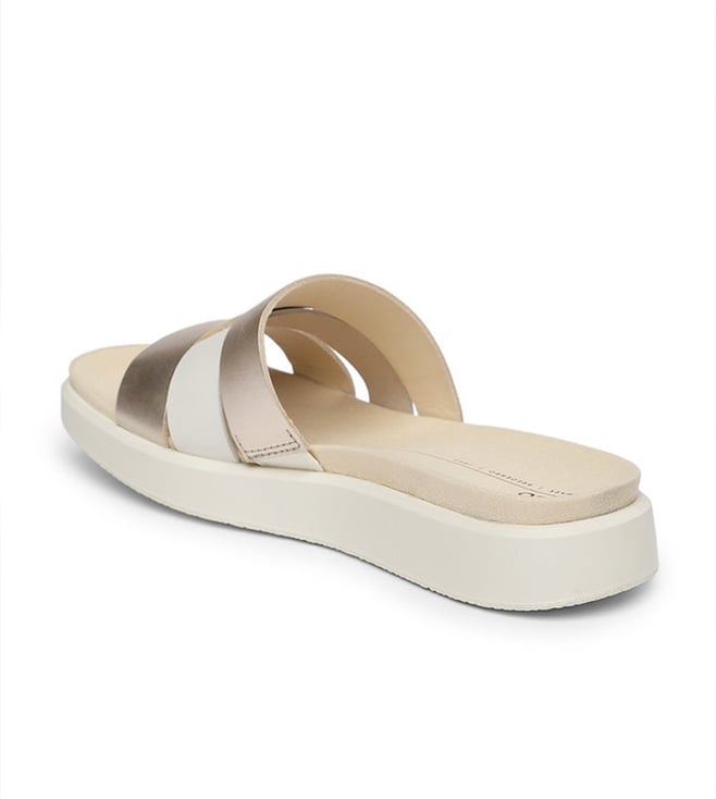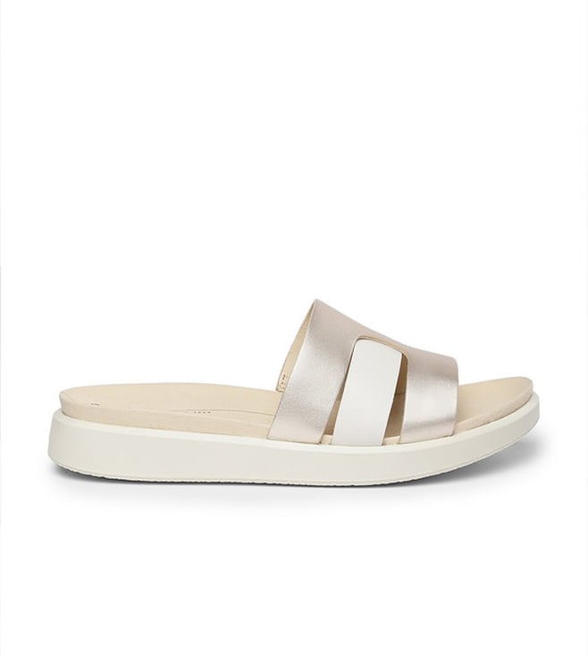 ECCO Women's Flowt White & Pure White Gold Slide Sandals