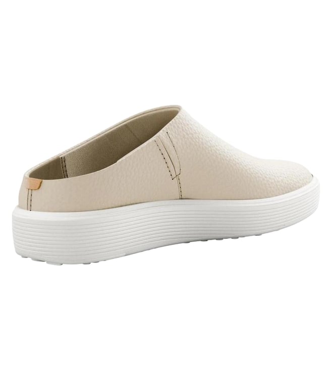 ECCO Women's Soft 60 Limestone Mules feature a non-closure design and extra width for an inclusive fit. Made from pebbled leather, they offer sleek style and comfort for effortless daily wear.