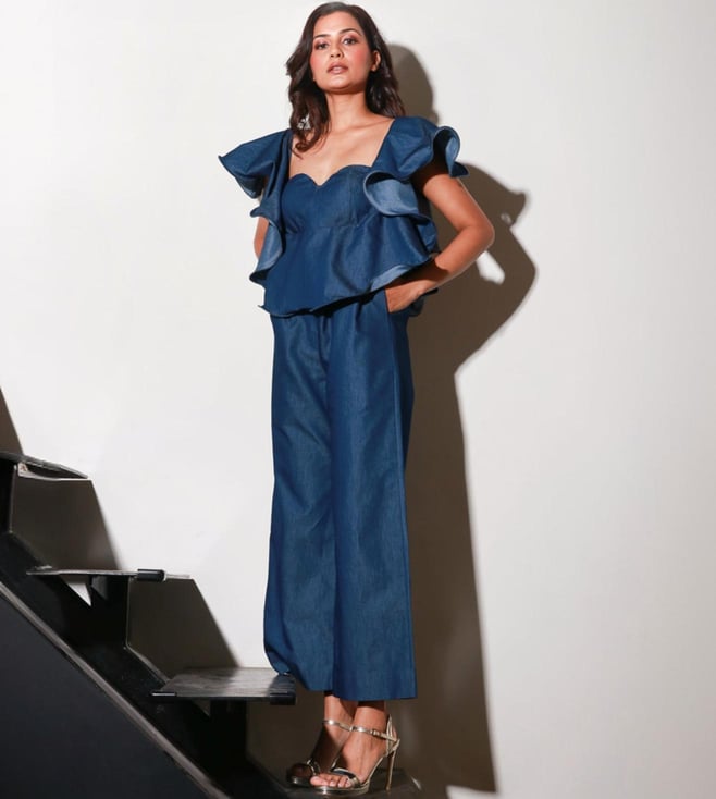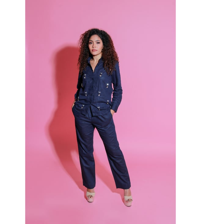 Blue Linen Embroidered Shirt & Pant Co-Ord Set