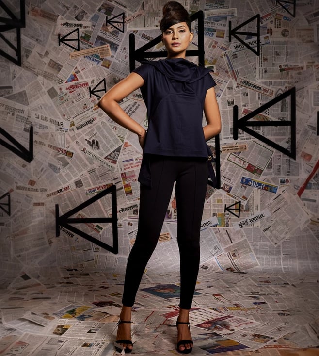 Blue & White Denim Waistcoat With Attached Jacket Kurta With Pearl Lycra Narrow Pants