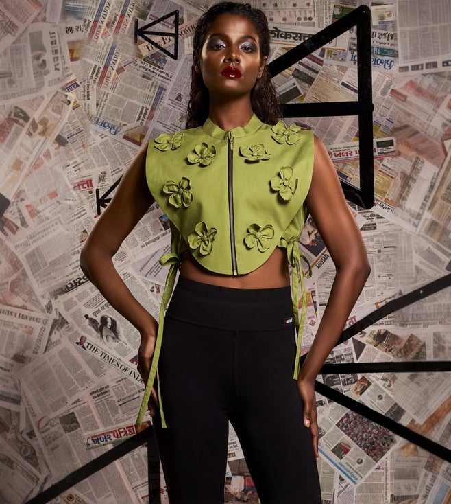 Ecru Linen Eyelet Collar Attached Flap Sleeves Top & Straight Pant Co-Ord Set