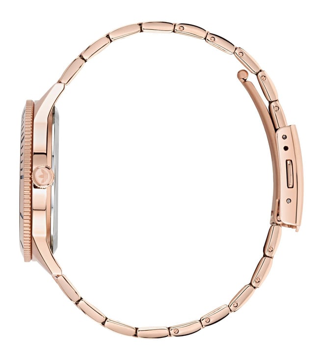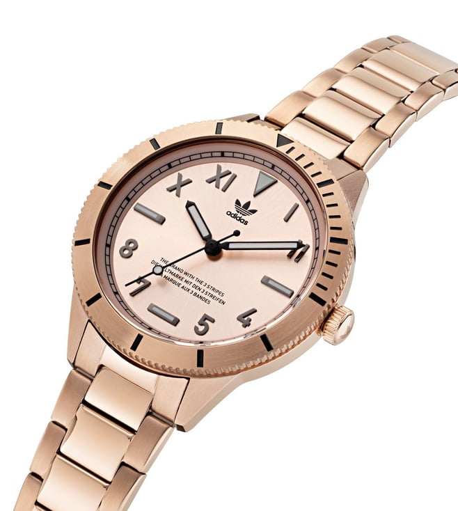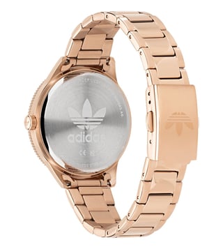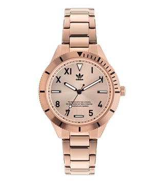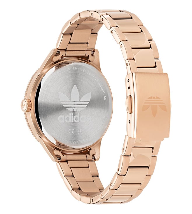 Expertly crafted with a sleek rose gold-tone finish, the Adidas Originals Edition Three watch is a unisex timepiece that combines style and precision. Featuring a 36mm dial and an elegant analog display, this watch is perfect for any occasion. With its refined design and reliable timekeeping, it offers the perfect balance of fashion and functionality, making it a must-have accessory for any style-conscious individual.