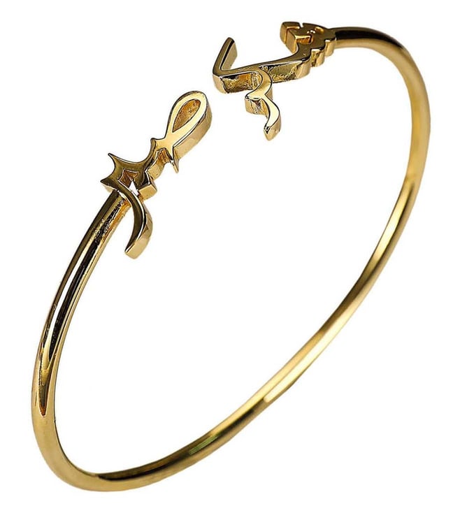 This bangle is highlighted with two Arabic words sabr and shukr that mean patience and gratitude. It is handcrafted in sterling silver with gold plating. It will surely elevate your look in an instance. Disclaimer: All other items in the image are only for display purposes and will not be a part of the delivery content.