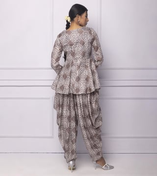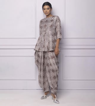 Curate a stunning look by wearing this cowl drape dhoti pant. Crafted using premium quality mulburry silk fabric, it will be very soft on the skin. Disclaimer: All other items in the image are only for display purposes and will not be a part of the delivery content. Product colour may slightly vary due to photographic lighting sources. Country of Origin - India.