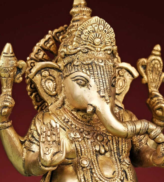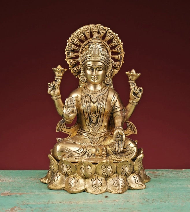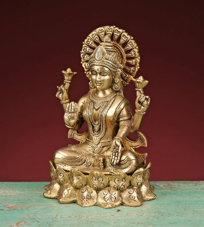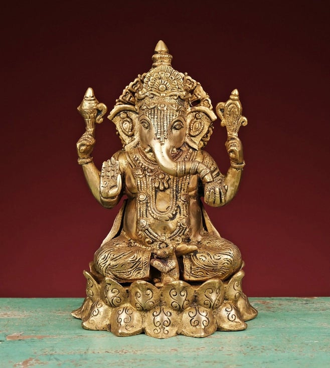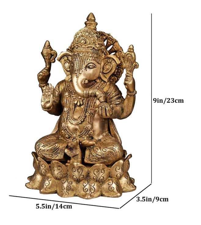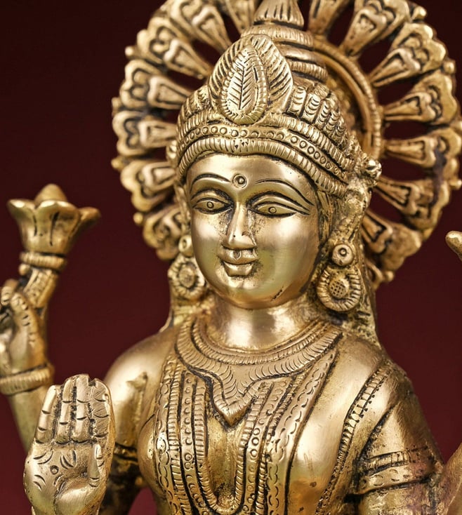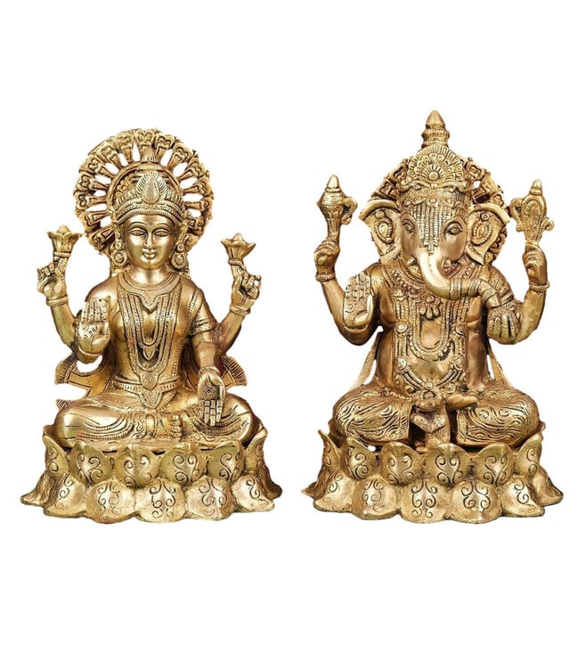 Celebrate prosperity and wisdom with this brass statue of Lakshmi and Ganesh seated on a lotus. It is an ideal piece for pooja rituals and festive decor, symbolizing blessings and good fortune. Disclaimer: Product colour may slightly vary due to photographic lighting sources. Country of Origin - India.