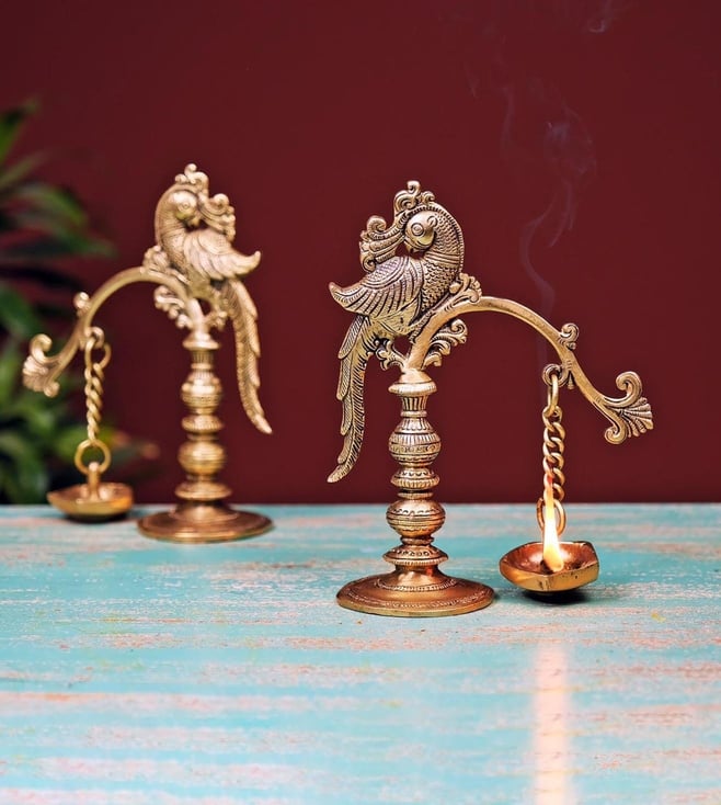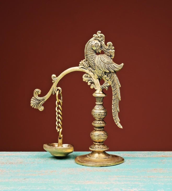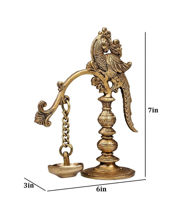 Ekaa Handicrafts Brass Parrot Lamp with Hanging Diya