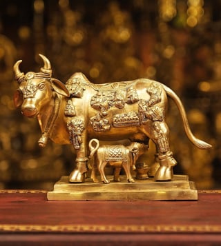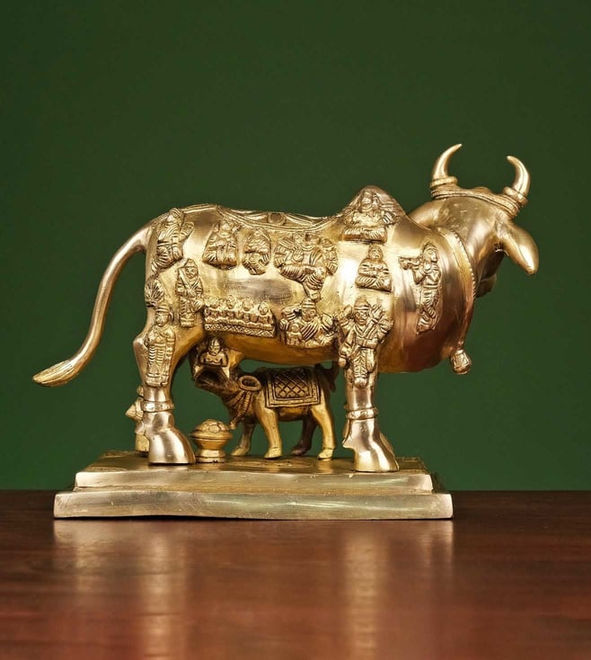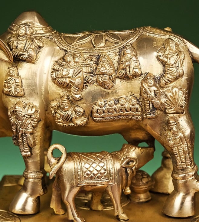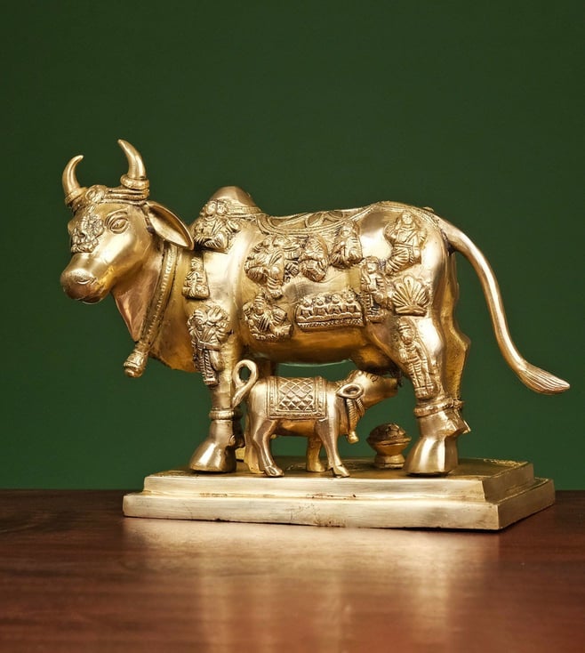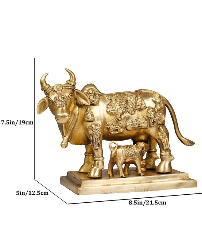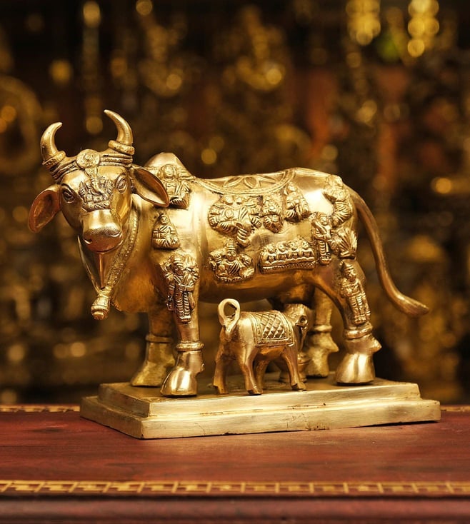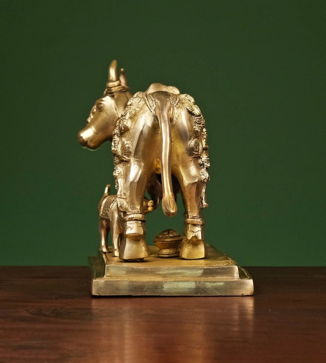 Ekaa Handicrafts Gold Brass Cow And Calf Statue