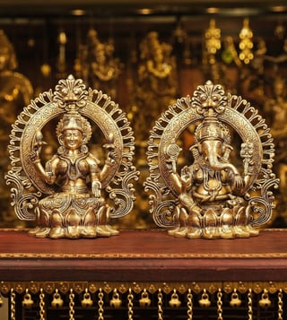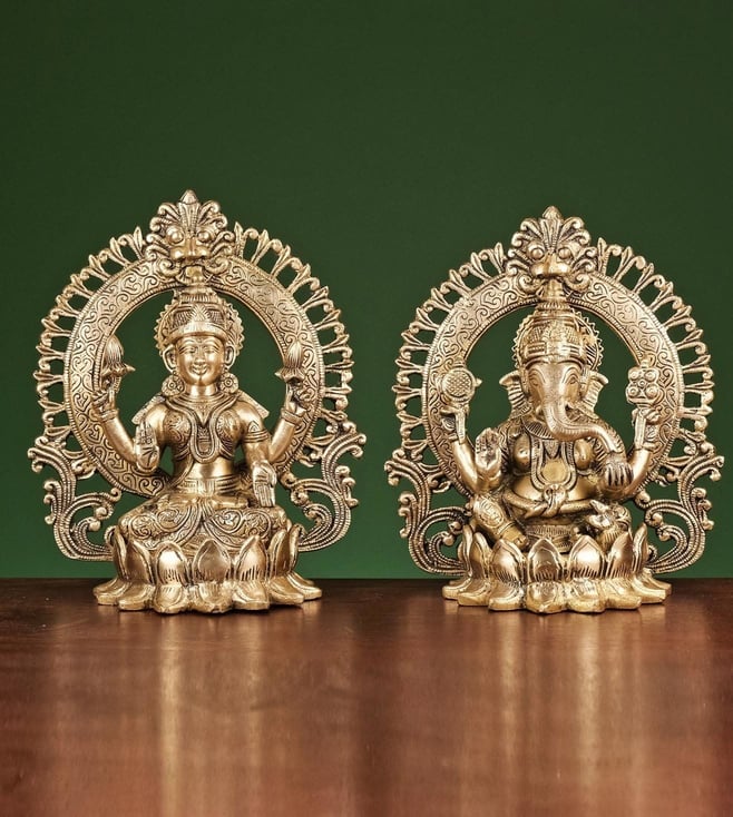 Ekaa Handicrafts Gold Brass Lord Ganesha, Goddess Lakshmi Idol