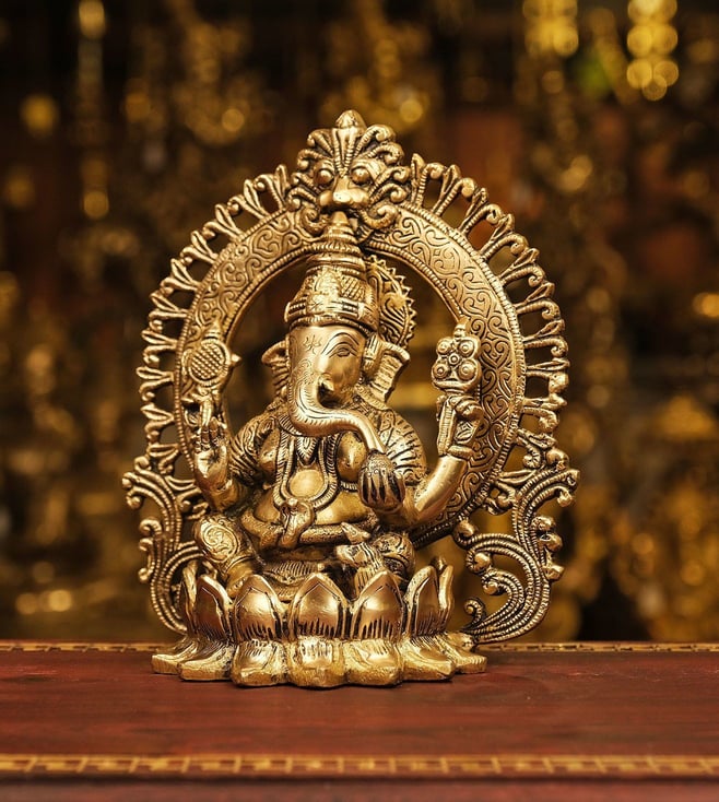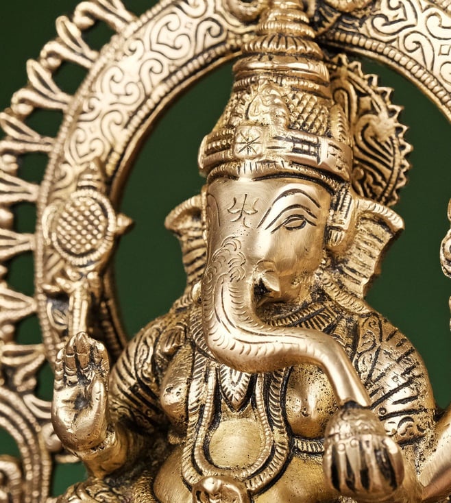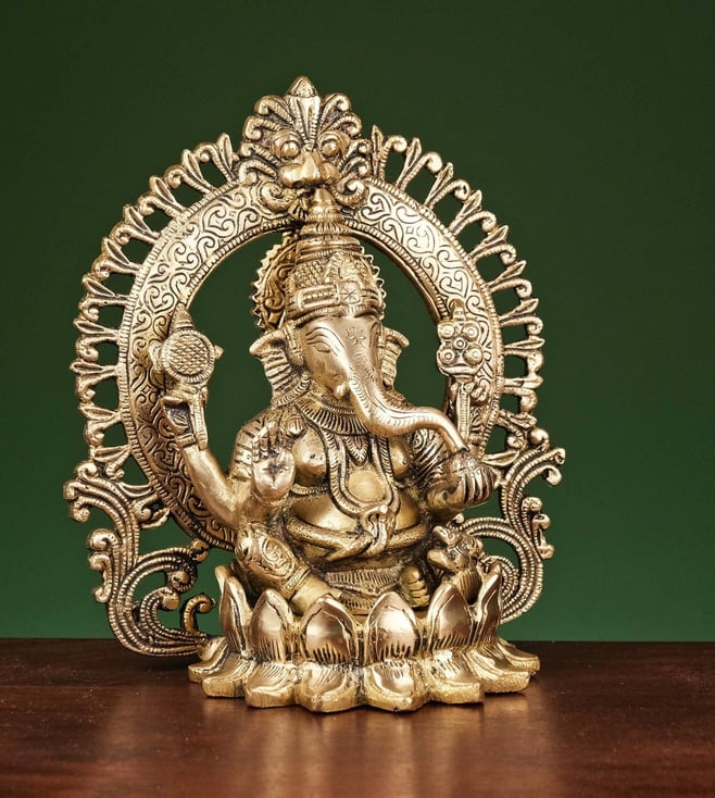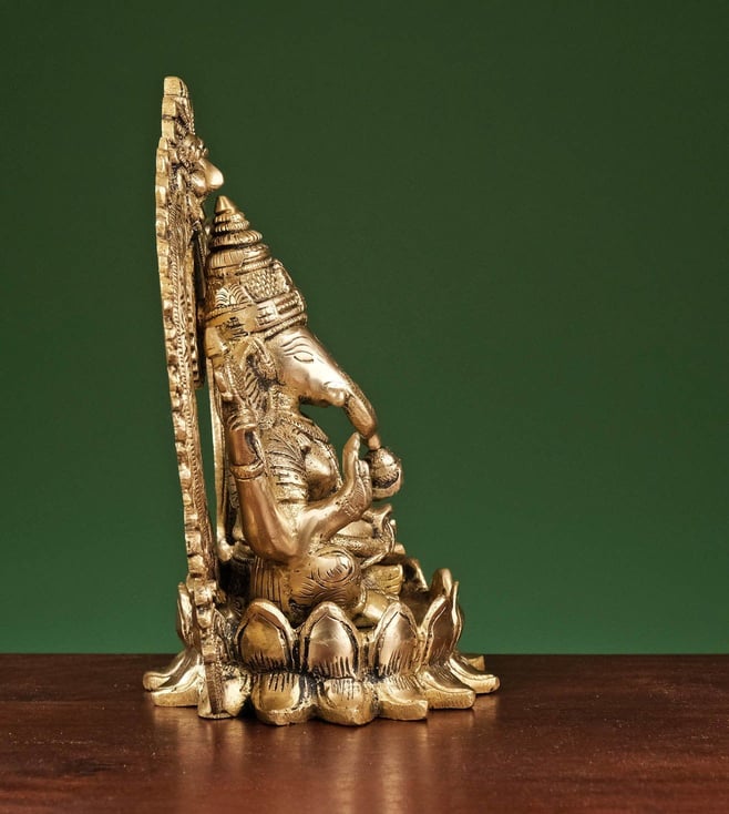 Ekaa Handicrafts Gold Brass Lord Ganesha Statue