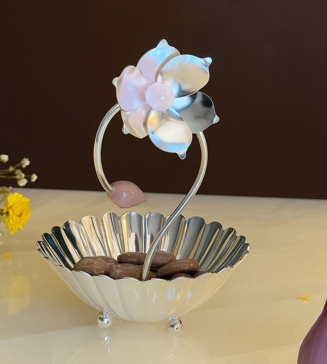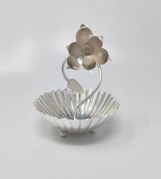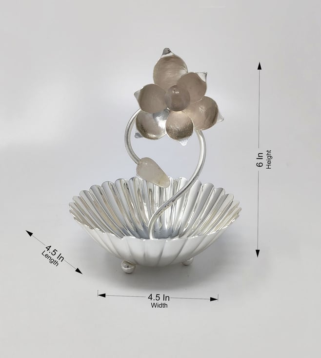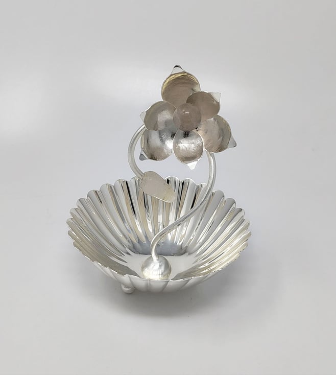 Add a touch of luxury to your table with the Line Nut Bowl, designed to impress with both beauty and functionality. Handcrafted from high-quality brass with silver plating, this bowl showcases a graceful floral design that rises elegantly from its scalloped base.Compact yet striking, it¿s the perfect size for serving nuts, dry fruits, chocolates, or candies. Beyond serving, it doubles as a stylish decor accent that elevates your dining or living space.This piece also makes an ideal gift choice for weddings, anniversaries, festivals, and housewarmings.