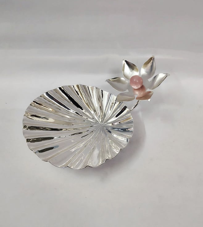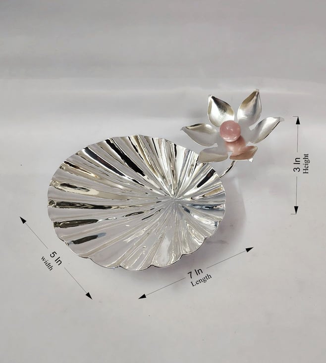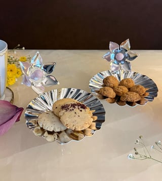 Add a touch of elegance to your dining and decor with the Lotus Shell Dish. Handcrafted from premium brass with silver plating, this exquisite piece is designed in a unique shell shape adorned with a lotus accent.Perfect for serving cookies, sweets, dry fruits, or simply as a decorative centerpiece, the Lotus Shell Dish beautifully reflects light and enhances any setting. Whether for festive occasions, special gatherings, or thoughtful gifting, it blends luxury with functionality.