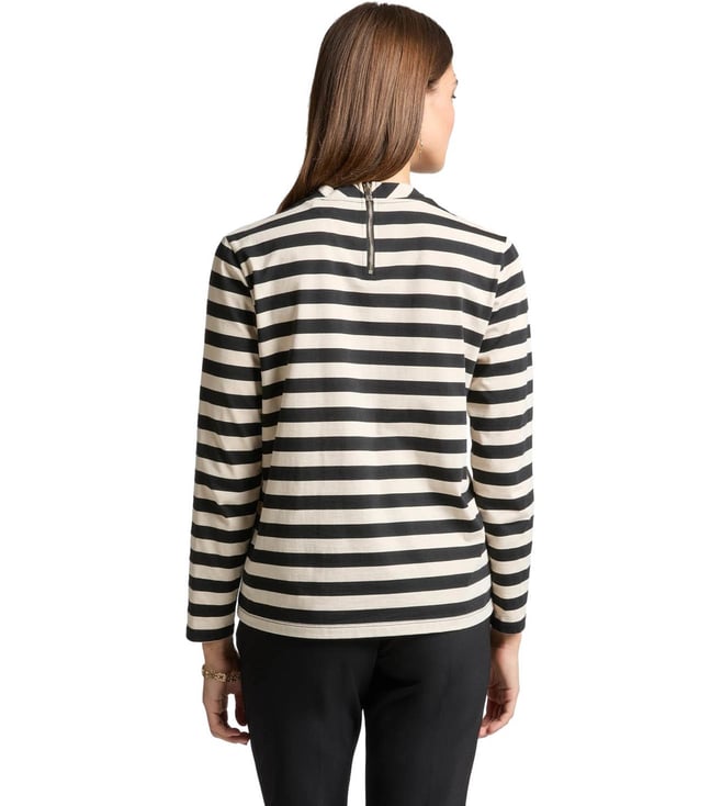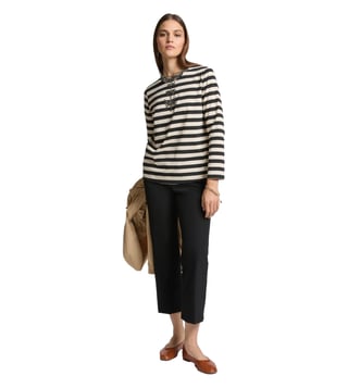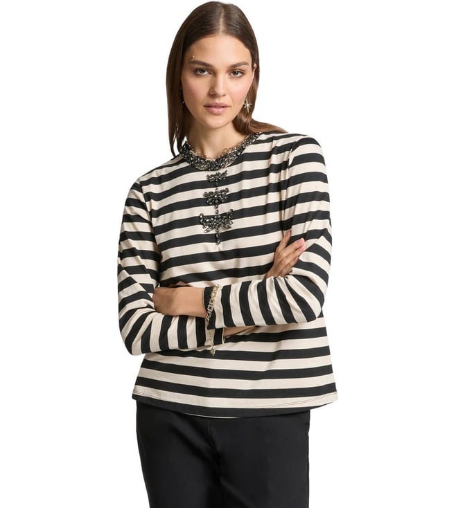 ELENA MIRO Black & White Striped Regular Fit T-Shirt