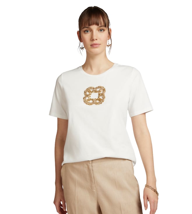 White Floral Embellished Regular Fit Tee