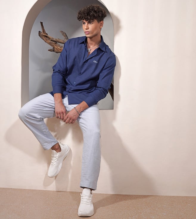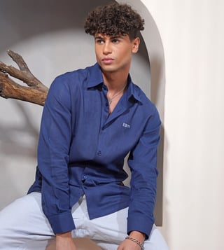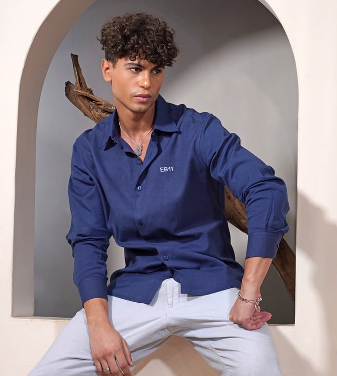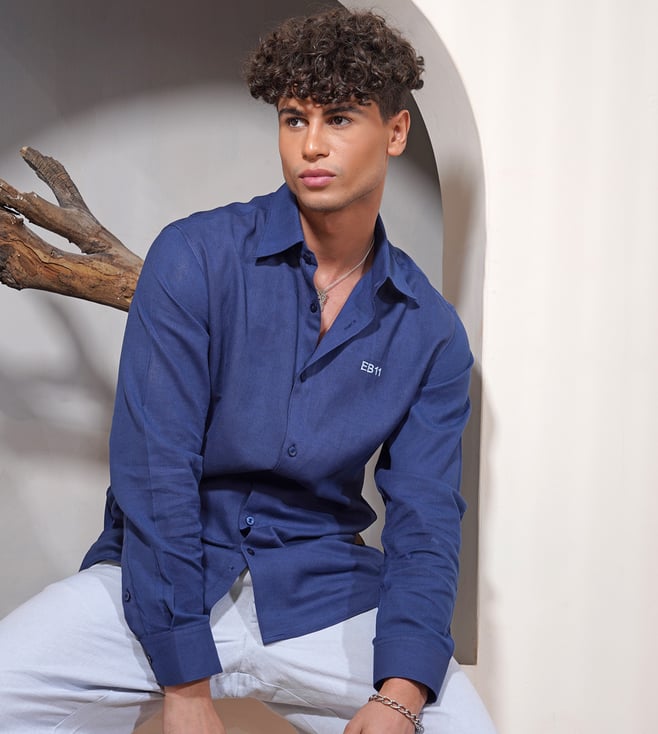 Eleven Brothers Dark Blue Linen Regular Fit Casual Shirt