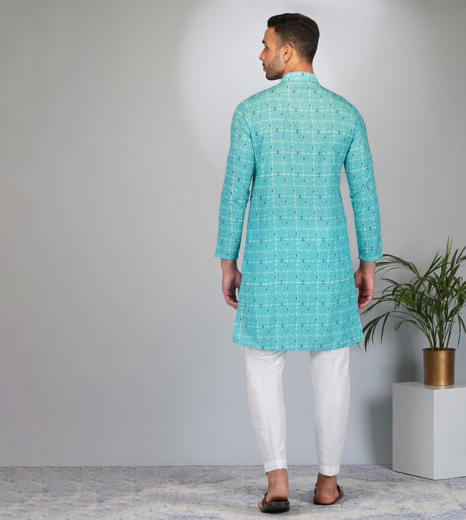 Eleven Brothers Green Foret De Fete Florest Softy Silk Kurta with White Plain Pant