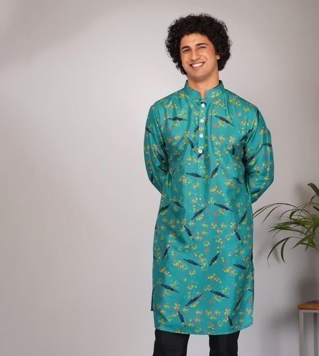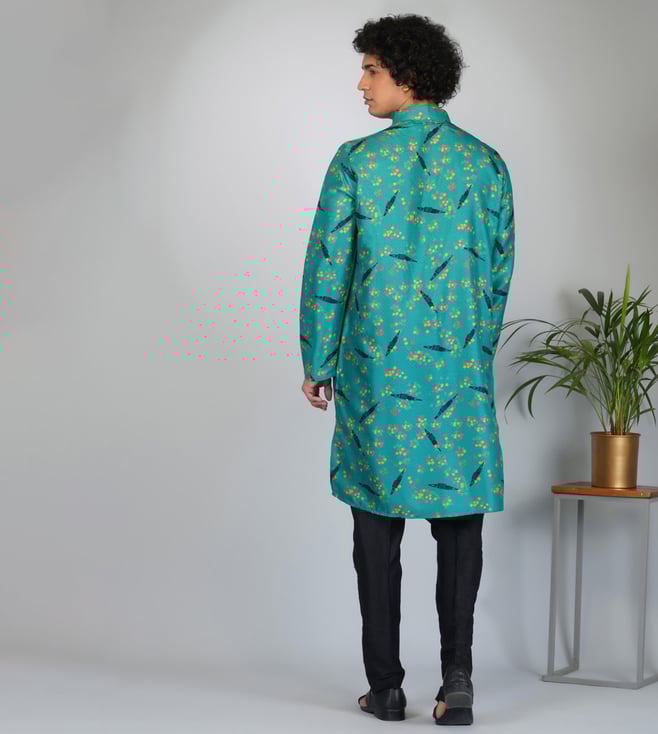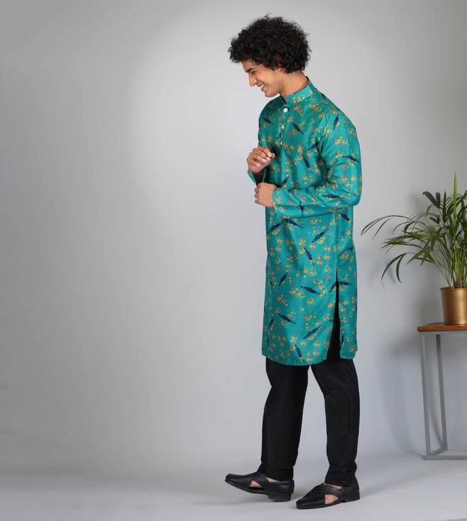 Eleven Brothers Green Naqqaash Sail Mulbery Silk Kurta with Black Plain Pant