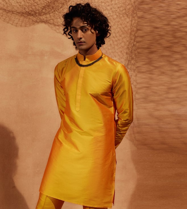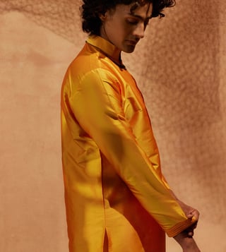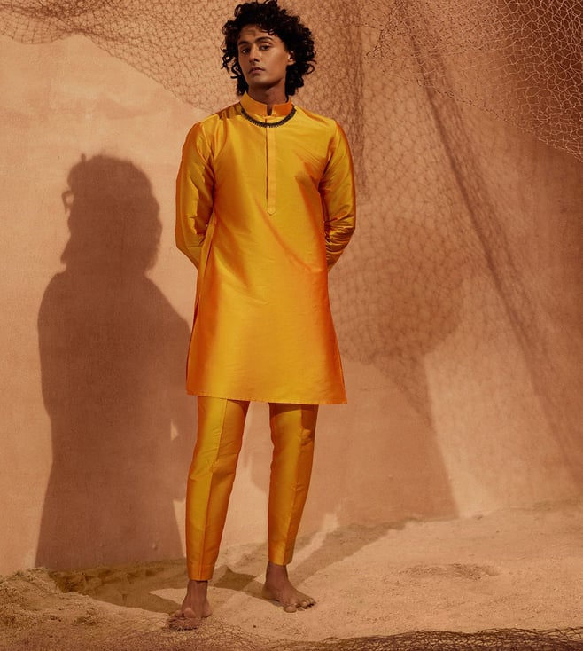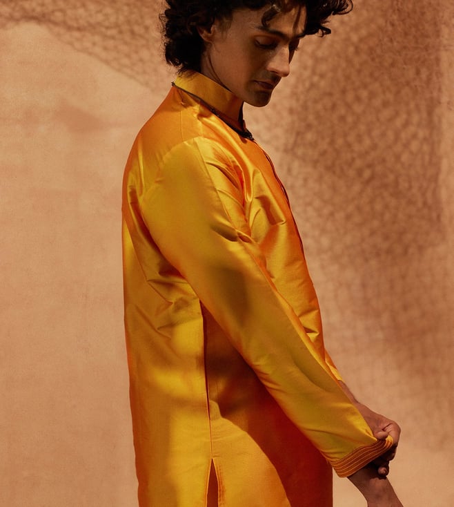 Eleven Brothers Orange Yellow Cotton Silk Regular Fit Kurta Set