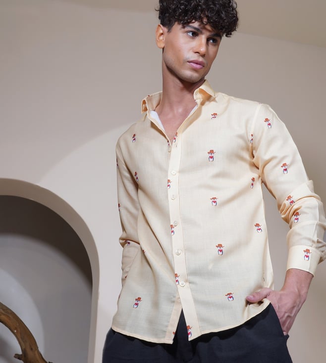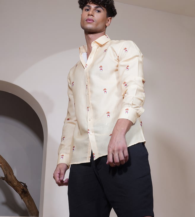 Eleven Brothers Yellow Linen Regular Fit Casual Shirt
