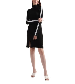 Elevate your wardrobe with this chic dress, featuring a flattering neck and streamlined sleeves. Crafted from breezy fabric and designed in a timeless pattern, this dress offers a sleek silhouette with a seamless, no-closure hemline. Discover your new go-to piece for versatile elegance.