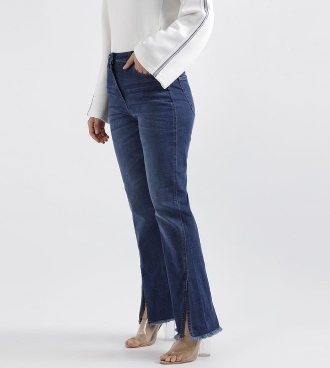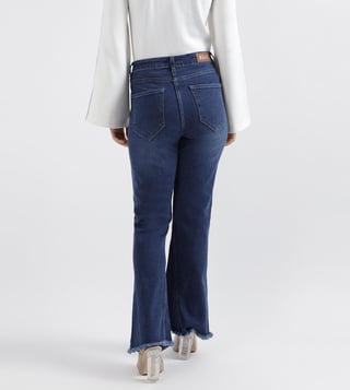 Discover the perfect blend of style and comfort with our inward seam stretchable bootcut jeans in a classic blue hue. Designed for women who value both fashion and functionality, these jeans feature a solid pattern and a flattering mid-rise fit. The button and zip closure ensures a secure fit, while the pure cotton fabric offers breathability and ease of movement. Ideal for any occasion, these jeans effortlessly transition from day to night, making them a versatile addition to your wardrobe. Embrace timeless elegance with every wear.