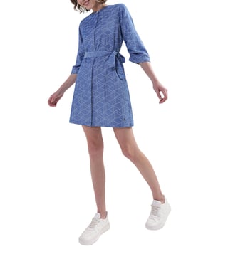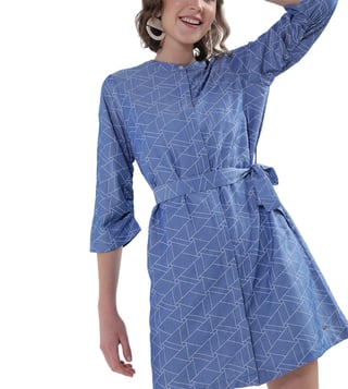 Get ready to make a striking fashion statement with this must-have dress. Crafted from fine fabric, this dress is not only comfortable to wear but also features a striking geometric all-over print. The front placket with buttons adds a modern twist to this iconic silhouette. Whether you are heading to a summer BBQ or a date, this dress is sure to impress.