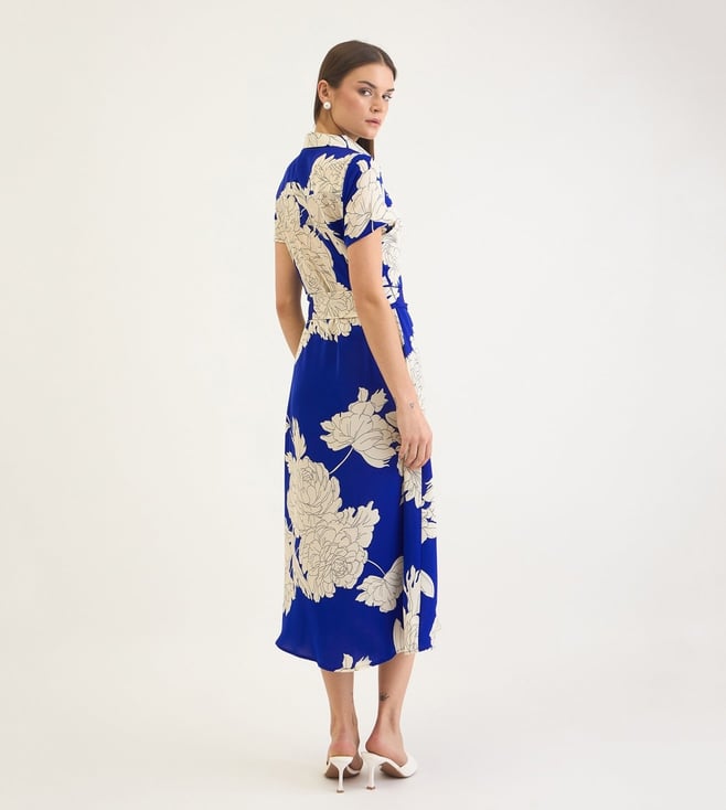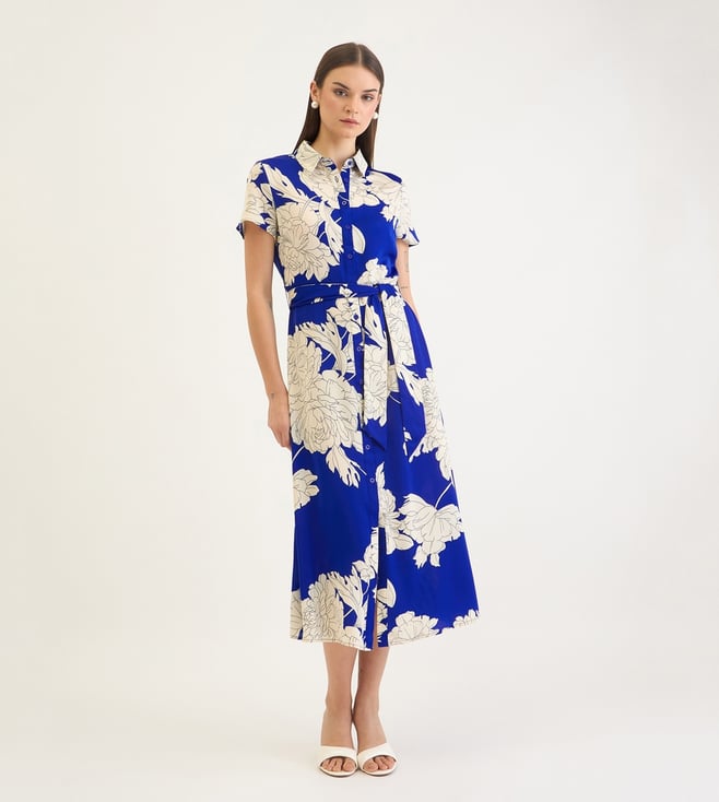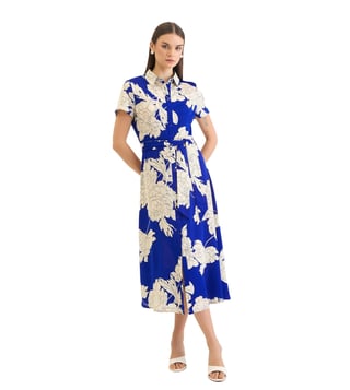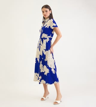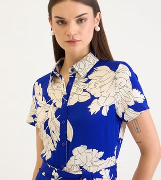 Discover effortless style with our blue shirt dress, featuring a relaxed fit adorned with a charming leaf pattern. This versatile piece is crafted from high-quality polyester fabric, ensuring comfort and durability. The short sleeves and classic shirt collar add a touch of sophistication, while the button closure offers ease of wear. Perfect for any occasion, this dress also boasts an all-over floral print that adds a feminine flair. Whether you're heading to brunch or a casual day out, this dress is your go-to choice for chic simplicity and timeless elegance.